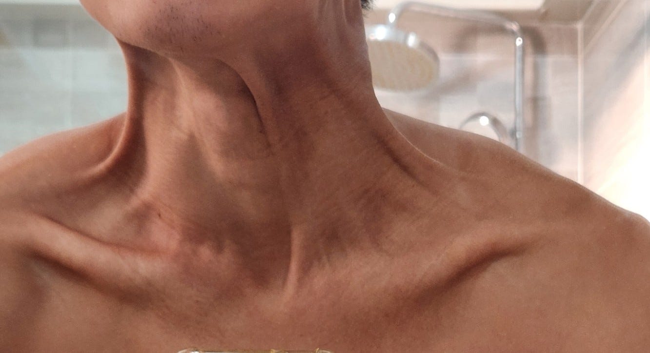 Then in June 2025, I came across TRE (Trauma-release Exercise) and made the connection that all that tension on the right side of my neck was connected to my anxiety issues and the reason why my right side was so much more tense and ‘off’.